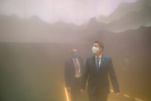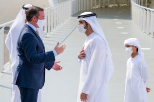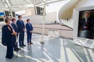 Wie ein Beduinenzelt ragt der Luxemburger Pavillon hervor. Direkt neben dem britischen, der mit seinen eckigen Formen etwas klobig daherkommt, wirkt die Konstruktion der luxemburgischen Architekturfirma Metaform anmutig. Im Sommer wäre das Dach wohl von Hitzeflimmern überdeckt gewesen, im November reichen die 27 Grad nur dafür aus, die wartenden Gäste ins Schwitzen zu bringen. Die Weltexpo 2020 wurde mitten in der Wüste von Dubai errichtet. In Rekordzeit wurden hier 192 Pavillons aus dem Boden gestampft. Mittendrin steht der Luxemburger Pavillon, der am Samstag mit Erbgroßherzog Guillaume und Tourismusminister Lex Delles hohen Besuch empfangen konnte. Mit einer Delegation aus Tourismus- und Wirtschaftsvertretern im Schlepptau machten sich der Erbgroßherzog und der DP-Minister ein Bild von dem hierzulande nicht unumstrittenen Pavillon.