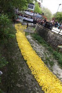 Wie jedes Jahr lieferten sich auch an diesem Samstag wieder Tausende Enten beim «Duck Race» ein Rennen durch das Pétrusse-Tal in Luxemburg-Stadt. Die Idee dahinter: Jeder, der teilnehmen will, kann für fünf Euro ein Entchen mit Nummer kaufen. Dieses Geld geht an Hilfsorganisationen.
