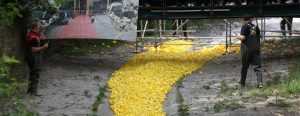 Wie jedes Jahr lieferten sich auch an diesem Samstag wieder Tausende Enten beim «Duck Race» ein Rennen durch das Pétrusse-Tal in Luxemburg-Stadt. Die Idee dahinter: Jeder, der teilnehmen will, kann für fünf Euro ein Entchen mit Nummer kaufen. Dieses Geld geht an Hilfsorganisationen.