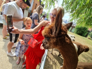 Die Ernährung von Alpakas besteht hauptsächlich aus Gras und Heu, aber sie können auch kleine Mengen an Getreide, Gemüse und Obst vertragen. Und gerade das Getreide war am Samstag das beste Lockmittel, immerhin kennen die Tiere die Schüsseln schon seit langem und ließen sich dann auch gerne füttern und zeitgleich mit Streicheleinheiten verwöhnen.