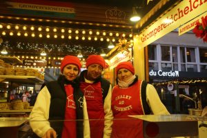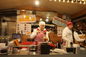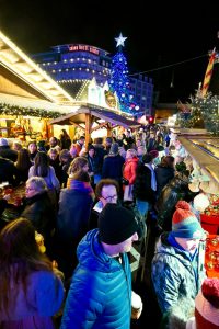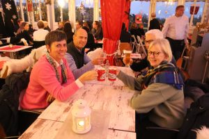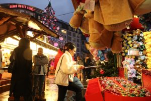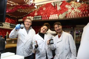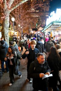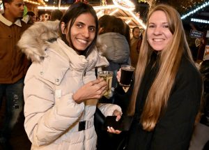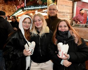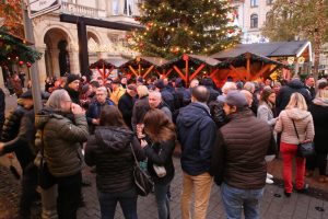 Gleich im Anschluss servierten die Standbetreiber frischen Stollen und Glühwein, im Hintergrund ertönten die Klänge von weihnachtlicher Musik. Auch wenn der Wettergott den Schnee nicht zu liefern vermochte, breitete sich schnell eine vorweihnachtliche Stimmung aus. Die ersten Gäste kosteten Glühwein und begannen ihre Shoppingtour auf der Suche nach Dekorationsgegenständen.