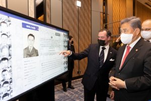 Wirtschaftsminister Franz Fayot und der koreanische Minister für Wissenschaft und ICT Lee Jong-ho nach der Unterzeichnung der Absichtserklärung im Weltraum-Sektor