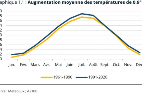 Luxemburg wird wärmer. Von 1991 bis 2020 war es durchschnittlich 0,9 Grad wärmer als zwischen 1961 und 1990. Und: In den vergangenen 30 Jahren waren die Winter im Vergleich zum Zeitraum 1961 bis 1990 feuchter und die Frühlinge trockener. „Das führt dann zu Problemen mit dem Grundwasservorkommen“, sagt Olivier Thunus vom Statec.