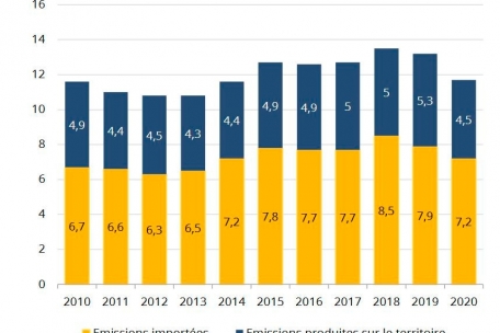 Der CO₂-Fußabdruck ist die Summe der direkten und indirekten Treibhausgasemissionen eines Produkts während seines Lebenszyklus. In Luxemburg ist der CO₂-Fußabdruck immer noch relativ hoch: Zwischen 2010 und 2019 stieg der Wert von 11,6 auf 13,2 Millionen Tonnen Kohlendioxid-Äquivalenten an. Ein Jahr später, beeinflusst durch die Covid-Pandemie, verringerte sich der CO₂-Fußabdruck auf 11,7 Millionen Tonnen. Der materielle Fußabdruck in Luxemburg ist mit einem Rückgang von 1,5 Prozent seit 2005 stabil geblieben.