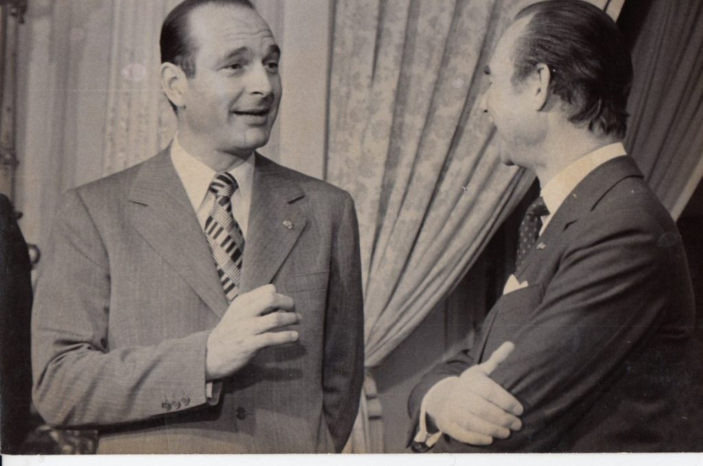 Jacques Chirac (links) spricht bei einem Besuch in Luxemburg am 2. Mai 1975 mit Großherzog Jean.
