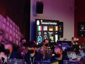 In einem kurzen Briefing erhalten die anwesenden Pressevertreter, vorwiegend aus Frankreich und Luxemburg, einige wenige Informationen über den Ablauf des Tages und zu AsterX. Die Übung wurde vergangenes Jahr erstmals vorgestellt. Dieses Jahr werden binnen sechs Tagen 16 Szenarien durchgespielt und trainiert, so etwa die Annäherung eines Fremdkörpers an einen Satelliten, der diesen beschädigen könnte, oder wie man auf ein gestörtes GPS-Signal reagiert. Die Szenarien seien an aktuelle Bedrohungen angepasst – zwar nicht spezifisch auf den erst kürzlich ausgebrochenen Krieg in der Ukraine, „aber trotzdem ähnlich“, meint ein Pressesprecher des CDE.