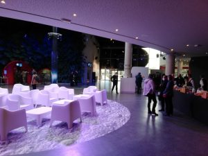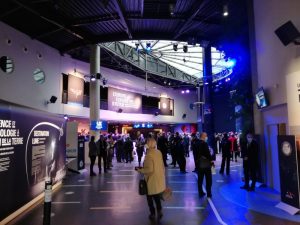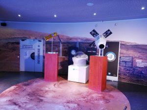 So bleibt auch ein wenig Zeit, um die „Cité de l’espace“ zu bestaunen, denn sie wird – zumindest visuell – ihrem Namen absolut gerecht: Über das Gelände sind „spaceige“ Exponate wie eine Rakete, eine Raumkapsel oder ein Rover ausgestellt. Auch die Empfangshalle des „Commandement de l’espace“ sieht recht futuristisch aus: ein großes rundes Gebäude mit hoher schwarzer Decke und in der Mitte ein gläsernes Dach. All das erzeugt eine weltraumartige Atmosphäre, die zusätzlich durch die eher schwache Beleuchtung verstärkt wird. Unter dem gläsernen Dach der Eingangshalle befindet sich eine Art Lounge – ganz in Weiß – der Boden darunter erinnert an die steinige Mondoberfläche.
