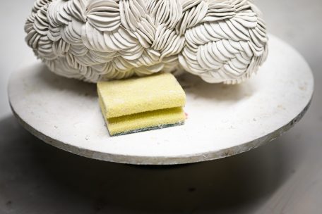 Ich hasse das Glasieren. Ich habe damit aufgehört, weil es auch nicht zu meinem Werk passt. Es sperrt das Material ein. Der Anfang eines neuen Kunstwerkes ist auch immer schwierig, da man unendlich viele Möglichkeiten hat und sich für eine entscheiden muss.