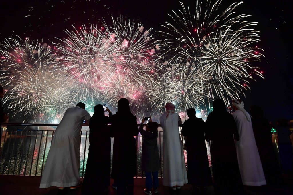 Mit einem Weltrekordversuch für das streckenmäßig längste Feuerwerk starteten die Vereinigten Arabischen Emirate ins neue Jahr. Das kleine Emirat Ras al-Chaima versucht damit nach eigenen Angaben, den bisherigen Rekord von 11,83 Kilometern zu überbieten. Das Feuerwerk dauerte zwölf Minuten.
