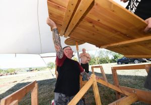 Ich kümmere mich hauptsächlich um Vertragsangelegenheiten mit den Künstlern sowie um den Kontakt mit der Gemeinde. Ich schaue, was wir alles an Material benötigen, und organisiere die Logistik oben auf dem Feld. Josiane Di Bartolomeo ist „Trésorière“ der Asbl. und regelt den finanziellen Aspekt. Die restlichen Mitglieder helfen beim Fest aus und kümmern sich etwa um den Aufbau. Dazu helfen uns Studenten das ganze Wochenende über.