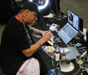 Hector, Ylane und Aymerick waren ebenfalls kostümiert. Das Trio war als Start-up-Unternehmen aus Frankreich anwesend. Ihr Ziel sei es, im kommenden Jahr das Rollenspiel „Reyk“ auf den Markt zu bringen. Das Gesellschaftsspiel solle eine mittelalterliche Fantasiewelt mit einer Note Steampunk und Horror auf dem Spielbrett darstellen. Während der LGX Convention sei man auf der Suche nach bestimmten Charakteren. Zudem setze man auf Crowdfunding, um das Spiel 2023 zu veröffentlichen, so Hector im Gespräch.