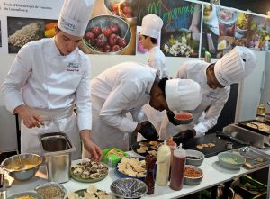 Auch die kleinen und jüngeren Besucher stehen im Fokus der Kulinarik. In Halle 8 am Stand der Hotelfachschule werden täglich Ateliers und kleine Kurse offeriert. Hier lernt man u.a. Garnieren und Dekorieren, das Backen von Cupcakes oder das Modellieren von Marzipanfiguren. Am gestrigen Sonntag waren auch erstmals die „Mini-Käch“ am Start. Eine Initiative des „Vatel Club Luxemburg“ in Kooperation mit der Hotelfachschule, bei der Jugendliche von 9-13 Jahren in den Beruf des Kochs oder der Köchin schnuppern können. Die Nachwuchs-Küchenchefs bereiteten für Sonntagabend ein kleines Menü zu.