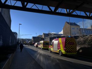 Dicke Rauchwolken sind am Dienstagvormittag über Schifflingen zu sehen – in der avenue de la Libération brennt es in einem Gebäude. Das bestätigt die Luxemburger Polizei gegenüber dem Tageblatt. Das CGDIS ist mit mehreren Fahrzeugen vor Ort und geht unter anderem von einem Kran aus gegen die Flammen vor. Tageblatt-Informationen zufolge ist der Brand offenbar bei Isolationsarbeiten ausgebrochen. Der ACL meldet auf Twitter, dass die avenue de la Libération zwischen der rue de la Paix und der rue des Artisans derzeit wegen des Feuers gesperrt ist. Das CGDIS meldet um 10.15 Uhr per Tweet, man solle die Gegend meiden und Fenster und Türen in der Umgebung geschlossen halten. Schaulustige und Anwohner stehen am und um den Einsatzort, einige beobachten das Geschehen vom Café gegenüber aus. Auch eine Drohne war im Einsatz.