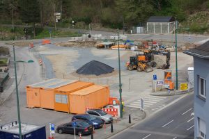 Am kommenden Montag geht es zumindest wieder los mit den Arbeiten am neuen Parkhaus am Benelux-Platz. Rund um die Baustelle sollen übrigens die auf Stoff gedruckten Zeichnungen der Kinder angebracht werden, die in den vergangenen Wochen an einem Malwettbewerb teilgenommen haben. Wie es mit der geplanten Europaschule weitergehen soll, weiß der Bürgermeister nicht: „Eigentlich soll das aus vorgefertigten Holzelementen bestehende Gebäude zum Schulbeginn im September fertig sein …“ In Planung ist auch ein den früheren Pferdeställen nachempfundenes Gebäude unterhalb der Schlossmauern. Gemeindedienste, die jetzt dezentralisiert funktionieren, sollen dort unterkommen.