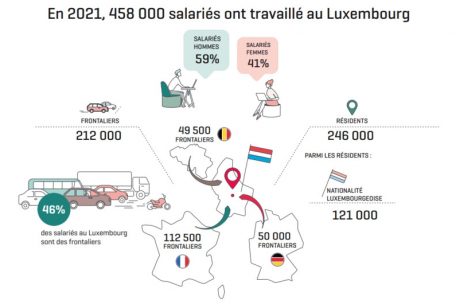 Die Hälfte der Grenzgänger, nämlich 112.500 Beschäftigte, kommt demnach aus Frankreich. Aus Belgien und Deutschland sind es jeweils weniger, beide Länder liegen dabei jedoch auf fast gleicher Höhe: Von Deutschland aus kommen 50.000 Grenzgänger ins Großherzogtum, aus Belgien sind es 49.500 Arbeitskräfte. 246.000 der in Luxemburg angestellten Menschen sind Einwohner des Großherzogtums, 121.000 tragen die luxemburgische Staatsangehörigkeit. 59 Prozent der Luxemburger Beschäftigten sind laut Statec Männer, 41 Prozent Frauen.