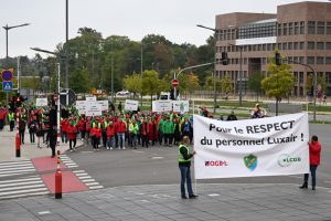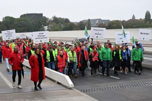 Untätigkeit der Generaldirektion, Überlastung des Personals – die Vorwürfe, die die Gewerkschaften OGBL, LCGB und NGL an das Luftfahrtunternehmen Luxair richten, wiegen schwer. Am Montag, also am Tag der zu dem Thema einberufenen Luftfahrt-Tripartite, haben sich zahlreiche Gewerkschaftler in Luxemburg-Stadt zu einer „Demonstration für den Respekt des Luxair-Personals“ versammelt. Unter den Protestlern war unter anderem Nora Back, Präsidentin des OGBL.