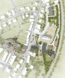 Das Siegerprojekt sieht einen autofreien, zentralen Platz vor; unter dem Rathaus soll ein Parkhaus mit 20 Plätzen entstehen. Insgesamt werden dort und in der direkten Umgebung 183 Parkplätze zur Verfügung stehen. Eine Tempo-30-Zone im Zentrum soll dazu beitragen, die sanfte Mobilität zu fördern. Geplant sind zudem 70 Wohneinheiten. Details dazu gab es allerdings keine, es sei ja ein Urbanismus- und kein Architektenwettbewerb gewesen. Aufgewertet werden soll der Dorfkern aber auch durch ein neues Kulturzentrum sowie ein neues Pfadfinderheim.