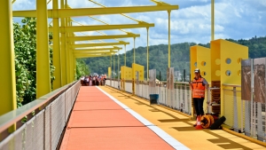 Corinne wirkt insgesamt sehr überzeugt von dem Projekt Fahrradbrücke: Das „Vëlodukt“ könne sich in Zukunft auch gut für Schulen herausstellen, indem sie z.B. ihren Sportunterricht dorthin verlegen. Auch die Farben der Brücke haben es ihr angetan. Die ganze Gegend rundherum wirke dadurch viel lebendiger, sagt sie. Dem stimmt auch eine Arbeitskollegin zu. Beide sind von der Passerelle begeistert – und helfen gerne beim Test mit.