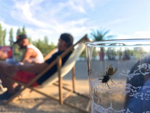 Der größte Fehler, den man im Umgang mit Wespen begehen kann, ist, zu versuchen, sie zu verjagen. Denn fühlen sich die Tiere angegriffen, greifen sie selbst an. Falsch ist es daher, sich in ihre Flugbahn zu stellen oder hektische Bewegungen zu machen. Wer sich draußen auf der Terrasse oder dem Balkon aufhält, sollte Lebensmittel und zuckerhaltige Getränke mit einer Abdeckhaube schützen.