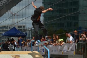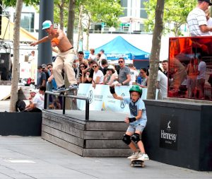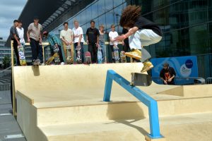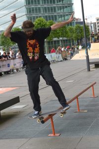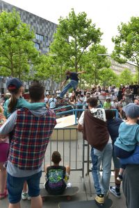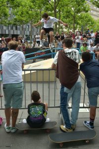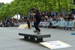 Trotz Trainings war es nicht immer einfach, so mancher Skater verlor beim ersten Anlauf sein Board oder stürzte gekonnt zu Boden, um nur wenige Sekunden später weiterzufahren. Auch das gehört zum Skaten dazu. Dem Veranstalter war daran gelegen, die breite Öffentlichkeit mit ins Geschehen einzubinden. Dies gelang bestens, viele Zuschauer fanden den Weg zur Place de l’Europe und verbrachten dort viele gemütliche Stunden zwischen Chillen, Feiern und Zuschauen. Auch die Kleinsten und Neulinge kamen auf ihre Kosten. Sie konnten aus erster Hand von erfahrenen Skatern lernen und ihre ersten Runden auf einem Skateboard drehen.