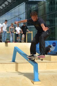 Im Mittelpunkt der Veranstaltung stand das sogenannte „Street Skateboarding“, also wenige Rampen, stattdessen urbanes Mobiliar wie Bänke, Treppen und Geländer. Auf über 1.000 m2 konnten sich die „Rider“ austoben, trainieren und im Contest beweisen. Ähnlich wie beim Eiskunstlaufen bewertete eine mehrköpfige Jury die besten Tricks.