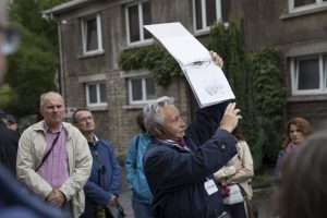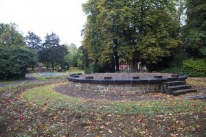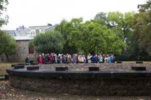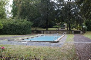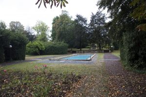 Nach einer Einleitung über die Geschichte des Hauses Heintz van Landewyck und den Standort Hollerich vom Historiker Robert Philippart ging es vom Hauptportal in den angrenzenden Park. Nachdem der damalige Konzernchef Joseph Heintz-Michaelis das Grundstück in Hollerich in drei Etappen (1887, 1890 und 1895) gekauft hatte, ließ er auf dem Gelände einen großzügigen Park anlegen. In der Mitte sind die Überreste eines Kiosks zu sehen – Zeugen einer Zeit, in der im Park noch Feste gefeiert wurden. Gleich daneben befindet sich ein Schwimmbecken, was vielen wohl extravagant vorkommen mag, es allerdings nicht ist, betrachtet man die praktische Seite davon, nämlich die Nutzung als Wasserreservoir im Falle eines Brandes.