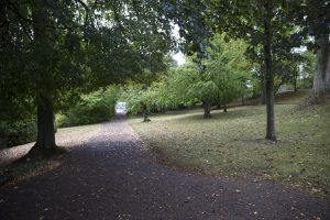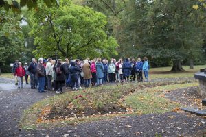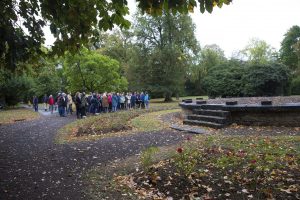 Von der Hollericher Straße aus ahnt man zwar, dass da noch was ist, doch es bleibt dem breiten Publikum meistens versagt, einen Blick hinter die Mauern zu werfen – außer man schließt sich einer der seltenen Führungen durch das Gelände an, so wie wir an einem verregneten Sonntagnachmittag im September. Etwa 70 Personen trotzten dem miesen Wetter, denn sie wollten sich die Gelegenheit nicht entgegen lassen, einen Park zu entdecken, der normalerweise dem Publikum verschlossen bleibt.