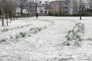 Mit dunklen Wolken hat sich der Schnee angekündigt und gegen 14 Uhr hat es dann zu schneien angefangen. Erst nur leicht – dann immer stärker. Gegen 17 Uhr fallen dicke Schneeflocken, die sogar liegen bleiben und Luxemburg das erste Mal seit Wochen wieder in Weiß hüllen.