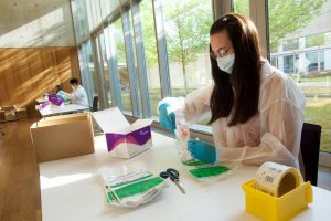Eine wichtige Rolle bei den Tests spielt das „Laboratoire national de la santé“ (LNS) in Düdelingen. Freiwillige Mitarbeiter des LNS bereiten die 10.000 Testkits – Tupfer, mit denen die Abstriche im Hals der Testpersonen gemacht werden – im freiwilligen Schichtdienst vor und verpacken sie.