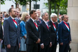 Begleitet von zahlreichen Ehrengästen, wurden Blumen am Mahnmal vor dem Resistenzmuseum niedergelegt. Anschließend setzte der Tross sich in Bewegung, zog durch die Alzettestraße in Richtung Rathausplatz, auf dem die Escher Vereine anschließend an der Ehrentribüne vorbei defilierten.