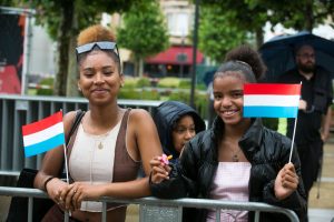 „Looss viru blénken d’Fräiheetssonn“, heißt es in der luxemburgischen Nationalhymne. Mit Sonne war am Mittwoch in Esch, am Vorabend zum Nationalfeiertag, allerdings zunächst einmal nichts. Bis kurz vor Ankunft des erbgroßherzoglichen Paares gegen 17 Uhr regnete es. Mancher dem Anlass entsprechenden Kleidung und Frisur drohte der Kollaps.