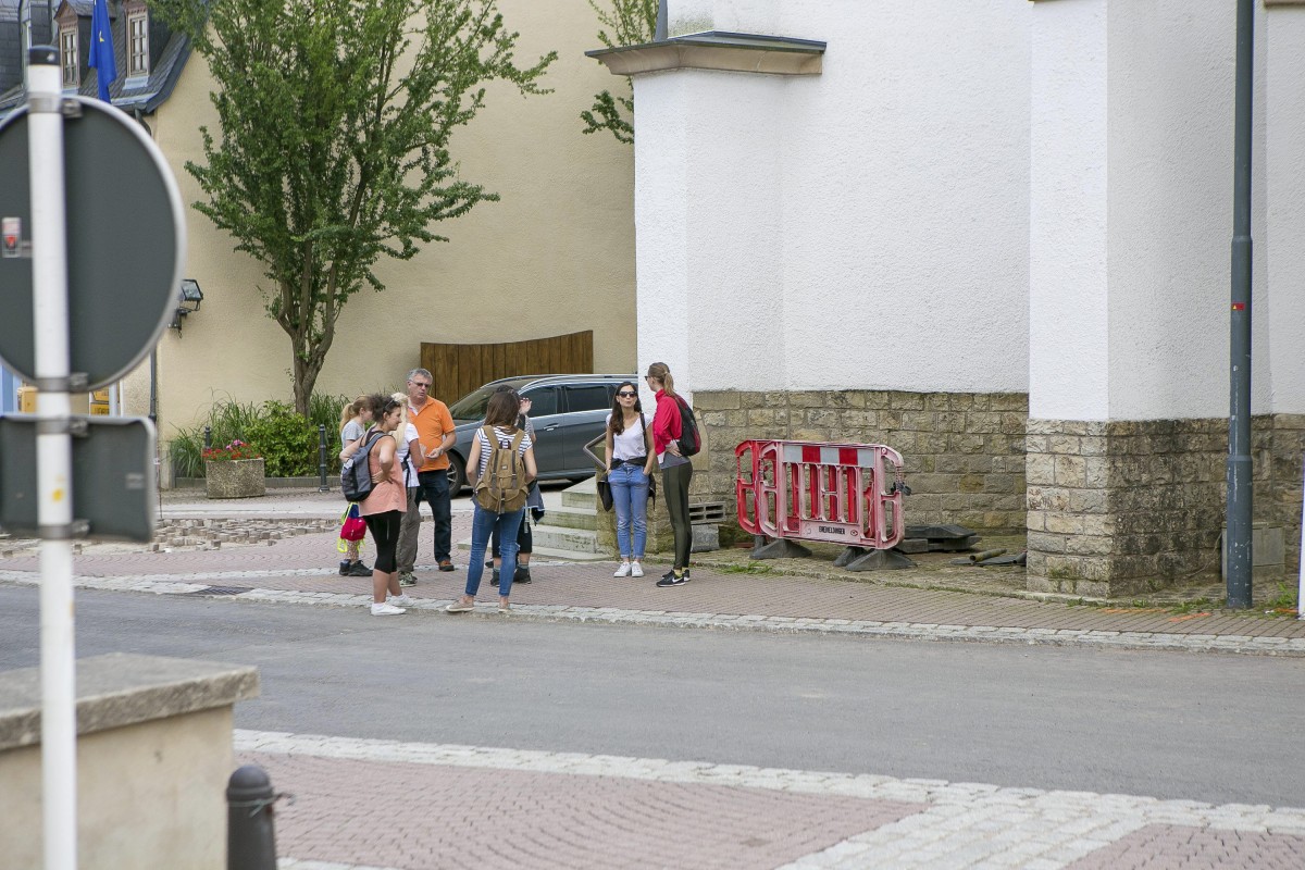Ausgangspunkt der heutigen Wanderung „La vigne en fleur“ ist die Kirche in Greiveldingen. Punkt 15 Uhr bei bestem Wanderwetter geht es los, eine bunte Gruppe aus Einheimischen und Luxemburg-Besucherinnen aus Schweden und Frankreich wird zunächst mit Hintergrundwissen über die klimatischen Entwicklungen versorgt. Im Vergleich zu den Jahren zuvor sorgte das Wetter in den ersten fünf Monaten dieses Jahres für einen Turbostart im Weinberg.