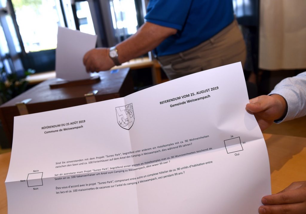„Wir sollen uns glücklich schätzen, dass hier jemand 50 Millionen Euro investieren möchte“, meinte hingegen eine junge Dame am Eingang des Wahllokals im Rathaus. „Das Projekt wird zur Verbesserung der Attraktivität der gesamten Region beitragen.“