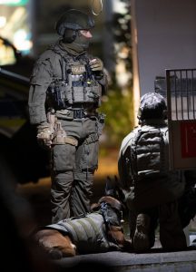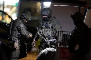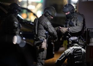 Nach tödlichen Schüssen in Hanau dringen Spezialkräfte der Polizei in eine Wohnung ein und finden zwei Leichen – unter ihnen der mutmaßliche Täter. Hinweise auf weitere Täter gibt es den Ermittlern zufolge nicht.