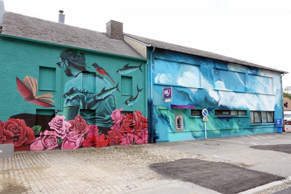 Insgesamt 30 Künstlerinnen und Künstler aus dem In- und Ausland konnten für das Event gewonnen werden. «Wir haben dabei auf einen gesunden Mix geachtet», erklären uns Raphael Gindt und Michi Mentgen. Rund die Hälfte der Aussteller kommt aus dem Großherzogtum, der Rest aus weiteren europäischen Ländern, wie etwa Rocket01, dessen Werk bereits vor einiger Zeit fertiggestellt wurde. Er hat eines der alten Einfamilienhäuser bemalt, die im Ortskern stehen und irgendwann einmal der Abrissbirne weichen müssen.