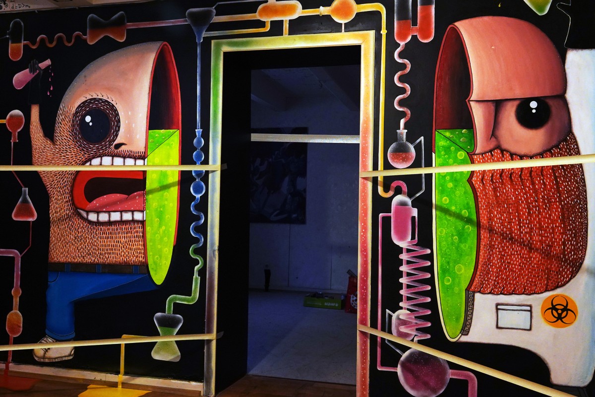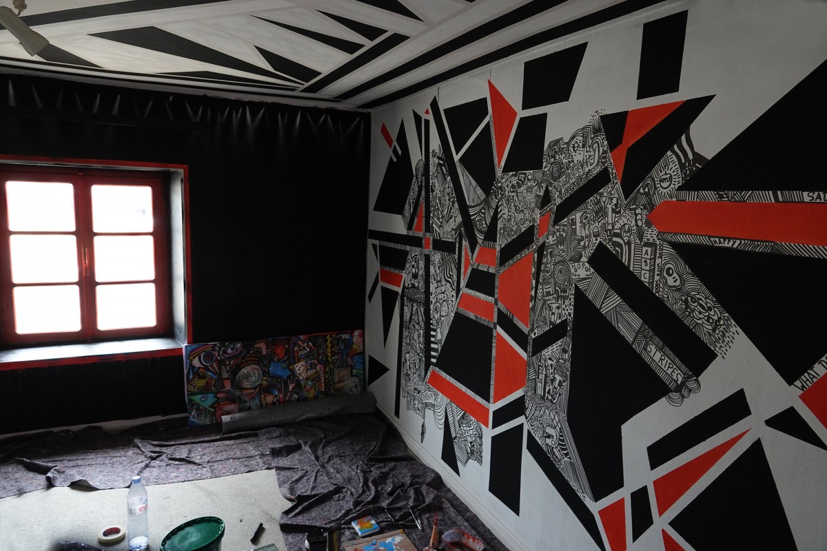 Beim Rundgang durch das marode Gebäude erhaschen wir erste Blicke auf die verschiedenen Werke, die zum einen bereits fertiggestellt sind, wie der Raum von Kit Empire, aber zum anderen auch auf Werke, die sich noch in der Realisierung befinden, wie diejenigen von Reiny Rizzi, Franky Daubenfeld, der jungen Architekturstudentin Marion Delaporte, Eleonora Pasti, dem bereits erwähnten und vielversprechenden ALight oder auch Sandra Biewers.