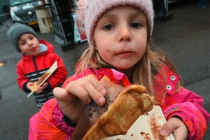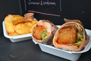 Dem schließen sich die Mitarbeiter von „Il est l’heure“ aus Belgien an. Dass das Wetter nicht mitspielt, sei natürlich traurig, doch sie hätten trotzdem schon einiges an Portionen verkauft, unter anderem vegetarische Burger, die es sowohl mit Kartoffeln als auch mit Paprika gibt. „Il est l’heure“ legt Wert darauf, alles selber herzustellen. Alle Soßen sind „fait maison“ und auch das Gemüse wird selber angebaut.