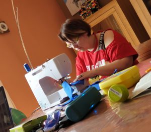 Die Coronavirus-Pandemie beschäftigte sie vom ersten Moment an. „Ich arbeite in einem Beruf, wo man sozusagen an der vordersten Frontlinie steht. Ich kann zum Glück jetzt daheim bleiben, meine Kolleginnen jedoch nicht“, so Jill Mertens. Im deutschen Fernsehen sah sie eine Reportage über Leute, die für ihre Mitmenschen Masken nähen. „Das mache ich auch“, beschloss die begeisterte Näherin. Sie teilte ihre Idee auf Facebook mit. Sofort meldeten sich zwei weitere Frauen. Zusammen mit Josiane Kirsch und Elisabeth Semedo Moreira näht sie jetzt fleißig Gesichtsmasken für das Altersheim. „Mundschutzmasken dürfen wir ja nicht sagen, weil das etwas anders ist“, betont die Näherin.