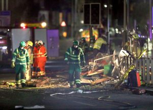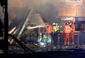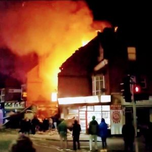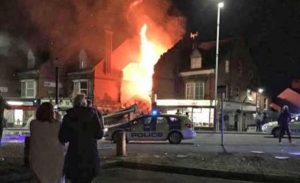 Anzeichen für einen Terroranschlag gab es nicht. «Gegenwärtig gibt es keinen Hinweis darauf, dass dies mit Terrorismus zu hat», sagte ein Polizeisprecher der britischen Nachrichtenagentur PA. Auf Fotos waren Flammen zu sehen, die aus einer Lücke in einer Reihe von Gebäuden in einer Einkaufsstraße schlugen. Twitter-Nutzer berichteten, im Erdgeschoss habe sich ein kleiner polnischer Supermarkt befunden.