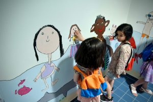 Farbtupfer: Die neue Familien-Umkleidekabine wurde von Kindern aus der Brill-Schule bemalt Foto: Editpress/Alain Rischard