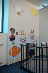 Escher Schwimmbad / Kleine Künstler, große Kunst: Kinder aus der Brill-Schule bemalen Umkleidekabine