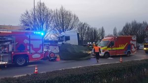 Die Verletzungen des Radfahrers sind laut ersten Angaben nicht schwer. Der Polizei zufolge ist der schwere Truck nämlich nicht über ihn gerollt. Da er sich aber offenbar mit seinem Gefährt unter dem Lkw verkeilt hat, haben sich die Bergungsarbeiten als schwierig dargestellt. „Die Rettungskräfte versuchen, den Mann so gut wie möglich da herauszuholen, ohne ihn zu verletzen“, sagt der Polizeisprecher. Nach der Bergung wurde der Mann ins Krankenhaus gebracht.