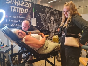 Während zwei Tagen fanden etliche Besucher den Weg zur Differdink Convention nach Oberkorn. Anders als bei ähnlichen Conventions in der Luxexpo, geht es in Differdingen gemütlicher zu. 50 Tätowierer brachten ihrer Kundschaft Symbole und Bilder unter die Haut. Unter den Tätowierwilligen begegneten wir Véronique, 57 Jahre alt, in Begleitung ihrer Tochter. Die Mutter lag entspannt auf der Liege. Es sei ihr viertes Tattoo, so Véronique. Ihr erstes Tattoo habe sie sich vor 26 Jahren stechen lassen. Danach war lange Zeit Pause angesagt. Es folgten unlängst zwei weitere Tattoos, eines davon ließ sie sich zusammen mit ihrer Tochter stechen – ein gemeinsames Geburtstagsgeschenk mit gleichem Motiv. Am vergangenen Samstag folgte dann das vierte Motiv, und es sei noch lange nicht das letzte, so Véronique. Als 14-Jährige ließ sich Véronique einen Ohrring stechen – sie sei damals die einzige Schülerin im Lyzeum gewesen, die einen Ohrring hatte, verrät sie.