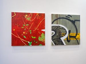 Entstanden sind 36 Werke, darunter auf Holz gedruckte Fotografien vom Künstlerpaar Martine Pinnel und Sandra Lieners, während das Duo Alain Welter und Jean-Marie Biwer allein 14 groß- und kleinformatige Bilder auf Leinwand, aus unterschiedlichen Techniken, ausstellen. Floriane Soltysiak hat sich mit Tom Flick zusammengetan, woraus die oben bereits erwähnten Installationen entstanden.