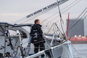Am 14. August war Thunberg im britischen Plymouth zu ihrem großen Transatlantik-Törn auf der Rennjacht «Malizia» aufgebrochen. Der norddeutsche Segelprofi Boris Herrmann und sein Co-Skipper Pierre Casiraghi brachten sie, ihren Vater Svante und einen Filmemacher über den Großen Teich. Die junge Schwedin überstand die Tage auf offener See bei teils heftigem Wellengang recht gut, wie regelmäßige Botschaften von ihr auf Twitter, Instagram und Facebook zeigten. Der schwedischen Zeitung «Dagens Nyheter» sagte sie kurz vor ihrer Ankunft: «Ich bin nicht ein einziges Mal seekrank geworden. Es war einfach schön, hinaus aufs Meer zu kommen und man selbst zu sein, abgekoppelt von allem und allen.» Es sei besonders schön gewesen, Delfine und das gesamte Meeresleben zu sehen.