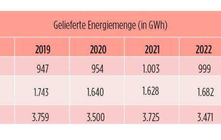 Entgegen vier Erwartungen ist 2022 jedoch, gleichzeitig mit dem Rückgang des Verbrauchs, auch das Volumen des hierzulande hergestellten Stroms, der in die Netze eingespeist wird, zurückgegangen. Mit 1.160 GWh lag es leicht unter dem Produktionsvolumen von 2021 (1.209 GWh). Das hat gereicht, um 19 Prozent des Landesverbrauchs abzudecken. Ein heftiger Rückgang wurde beispielsweise bei dem mit Erdgas hergestellten Strom festgestellt (von 173 GWh auf 98 GWh). Das dürfte durch den Krieg und die Gaspreise zurückzuführen sein. Auch bei Wasserkraft und Biomasse wurden leichte Rückgänge gemessen.
