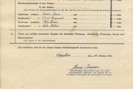 In der Nazi-Ideologie gehörten jedoch nicht alle Bewohner des Großherzogtums der deutschen „Rasse“ an. Ausgeschlossen waren zum Beispiel all jene mit italienischen, französischen und belgischen Vorfahren, heißt es in der Broschüre. Gustav Simon organisierte am 10. Oktober eine Volkszählung, um herauszufinden, wie viele „echte“ Deutsche es in Luxemburg gab. Neben den üblichen Personaldaten musste im Umfragebogen auch angegeben werden, ob man jüdische Vorfahren hatte.