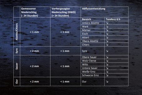 Tage weiterhin eine fallende Tendenz. „Über das Wochenende ist zu erwarten, dass sich alle Flüsse in ihr Flussbett zurückziehen. Ein Wiederanstieg der Wasserstände in den darauffolgenden Tagen ist nicht zu erwarten.“