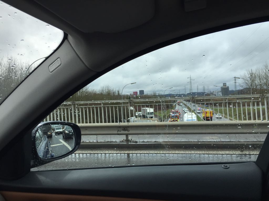 Am Mittwochmittag kam es zu einem schweren Unfall auf der A4: Ein LKW-Fahrer wollte von der A13 auf die A4 Richtung Esch/Alzette wechseln. Als er sich auf der Ausfahrtsrampe Lankelz befand, verlor er aus bisher ungeklärten Gründen die Kontrolle über seinen Lastwagen, durchbrach eine Leitplanke, fuhr den Hang hinunter und flog über die kalifornische Mauer in der Mitte der Autobahn.