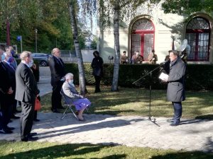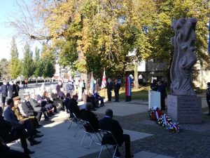 Erny Lamborelle, Präsident der „Fédération des enrôlés de force“, tritt als Erstes ans Rednerpult und gibt einen kurzen Überblick über drei Deportationswellen, die es in Luxemburg gegeben hat. Zudem geht er auf die Entstehungsgeschichte und die Symbolik des 1978 errichteten Denkmals ein.